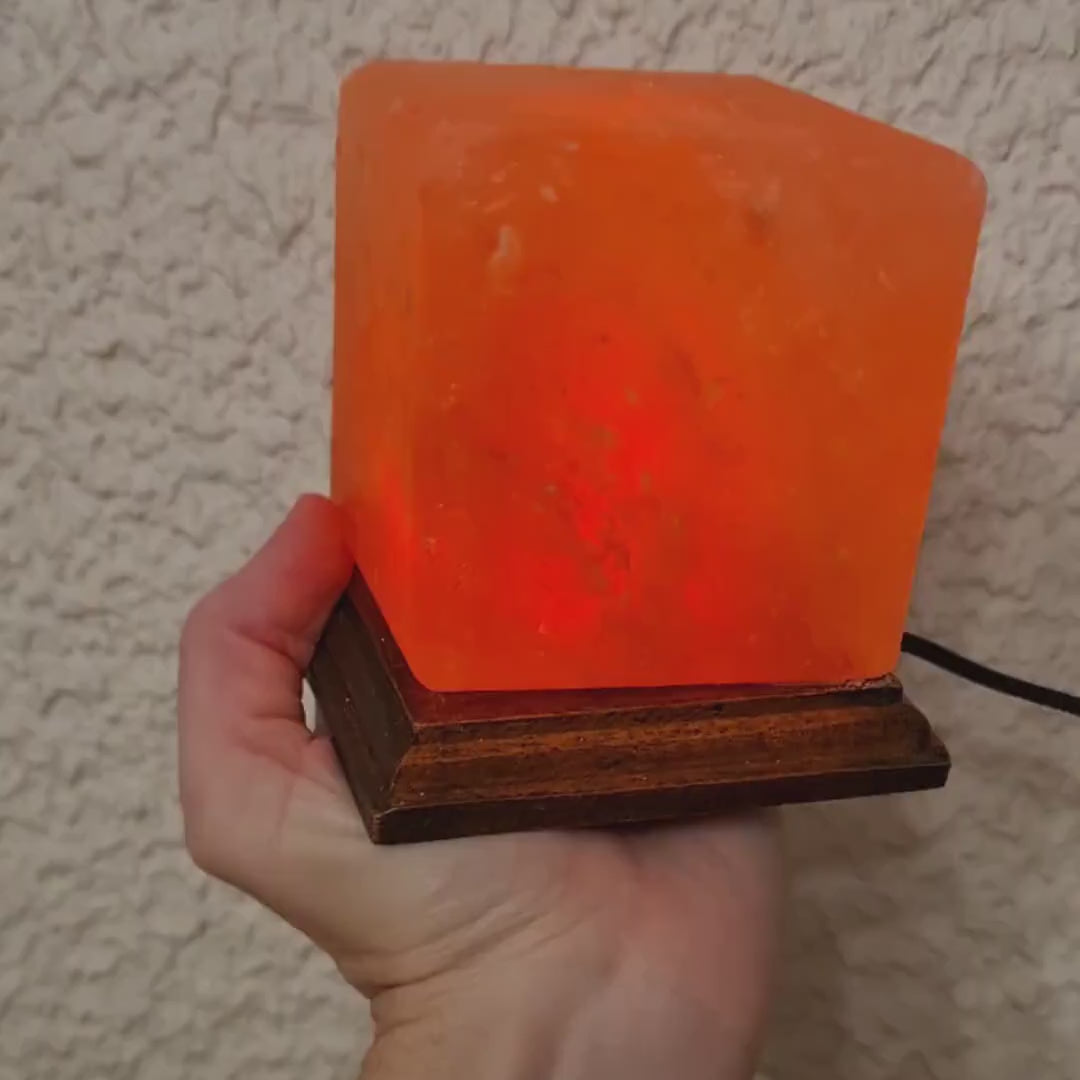 Schaffen Sie mit unserer Mini-Himalaya-Salzlampe im kubischen Design, ausgestattet mit einer USB-Buchse, überall einen Zufluchtsort des Wohlbefindens.