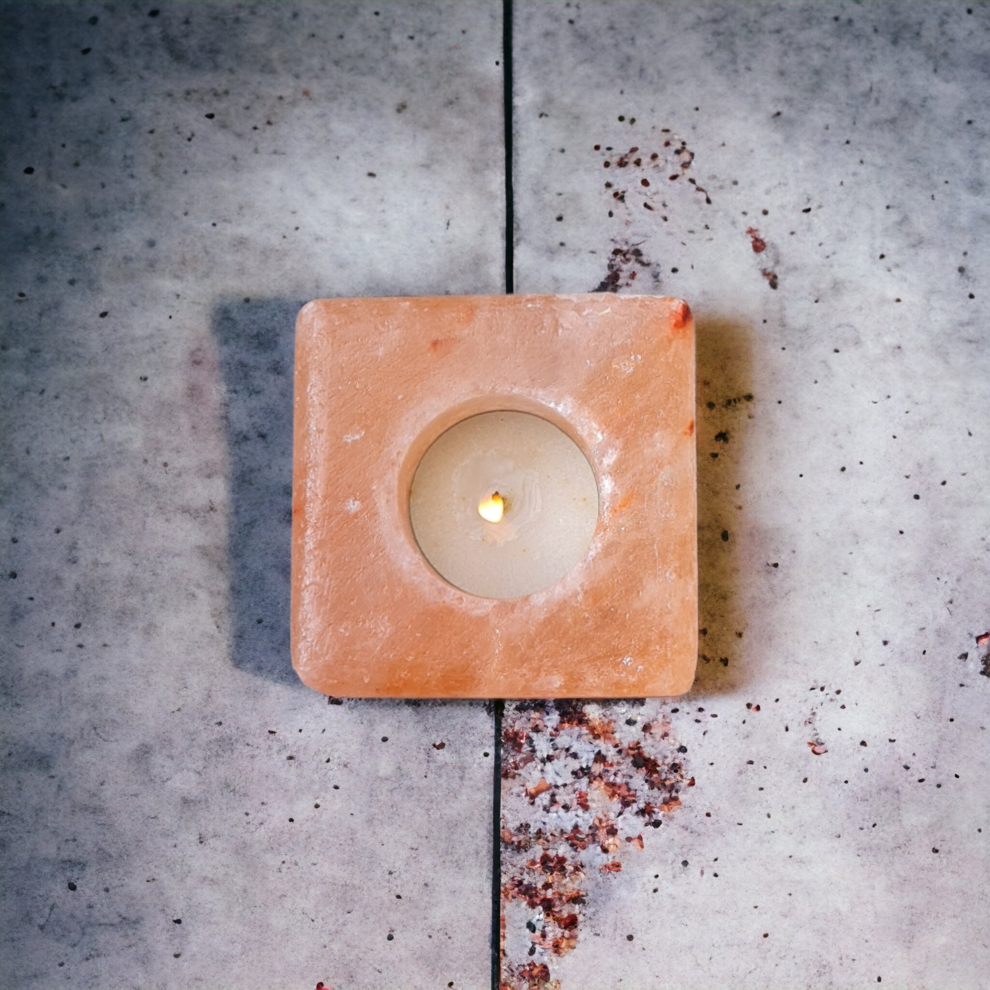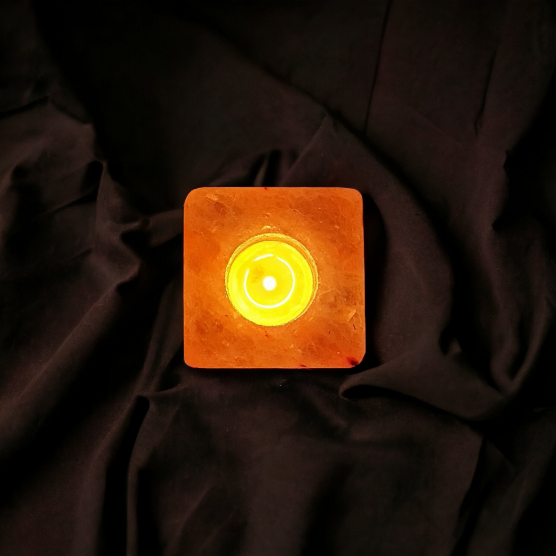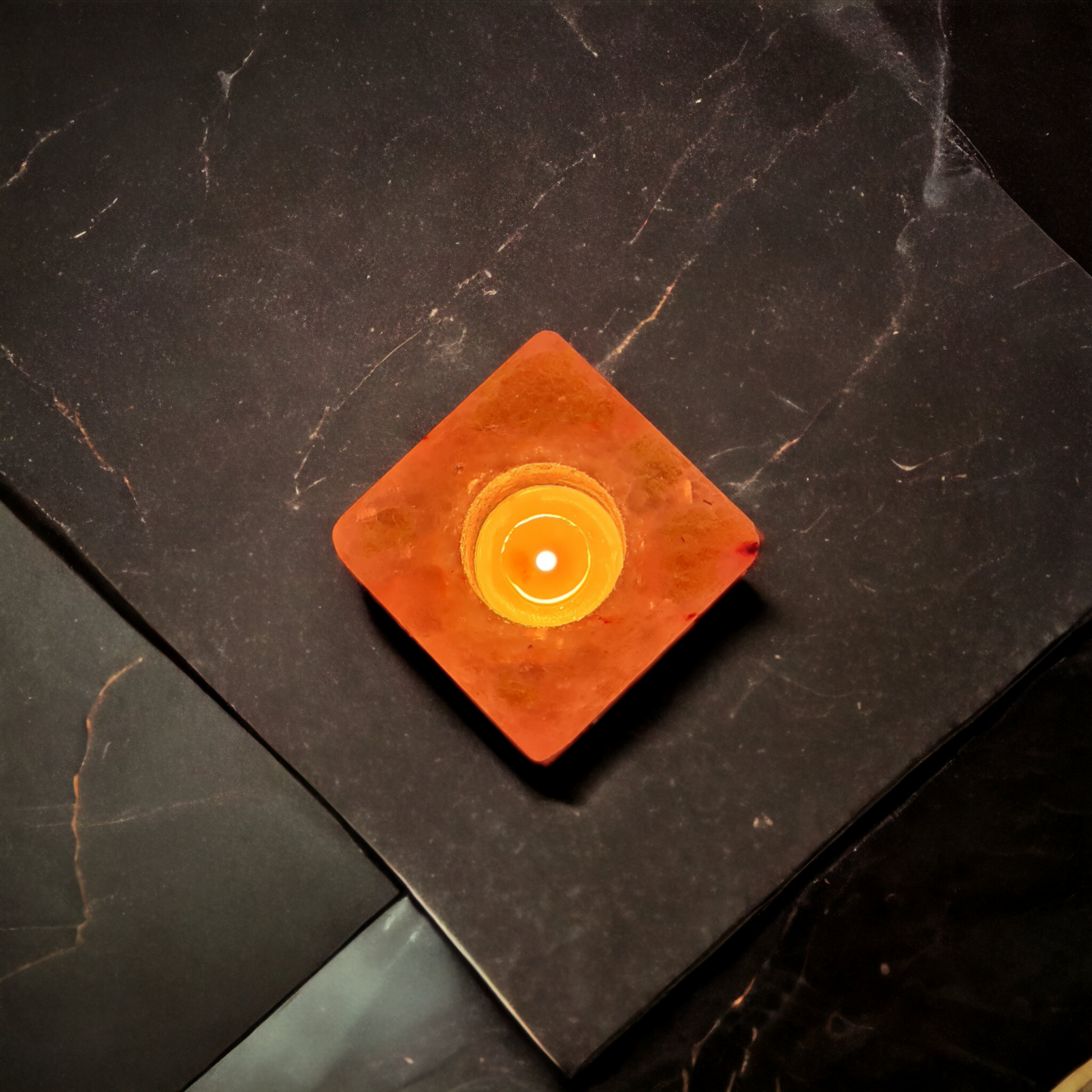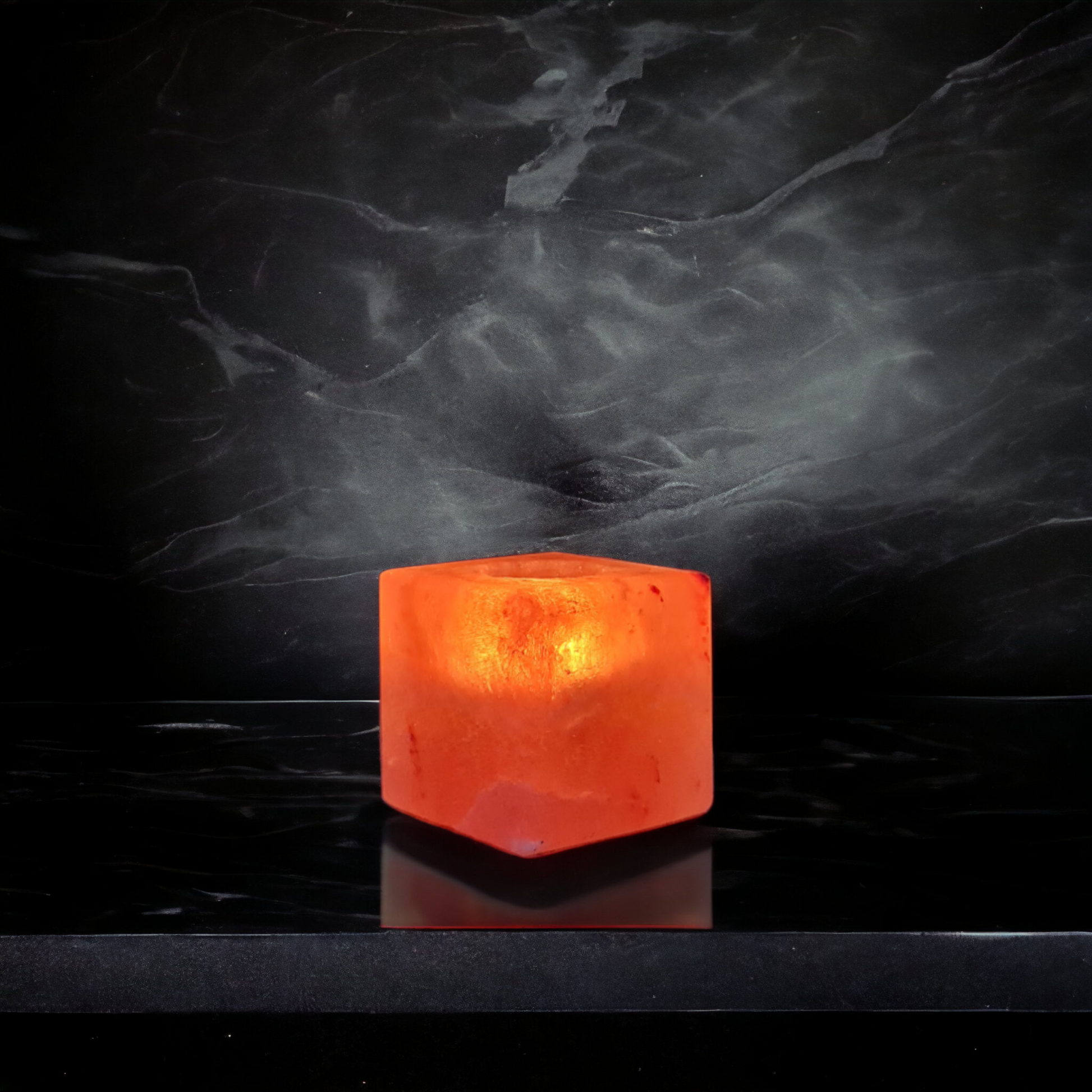 Métamorphosez votre espace avec le Bougeoir en Sel de l'Himalaya "Cube", soigneusement sculpté à la main dans le cristal de sel rose caractéristique de l'Himalaya.