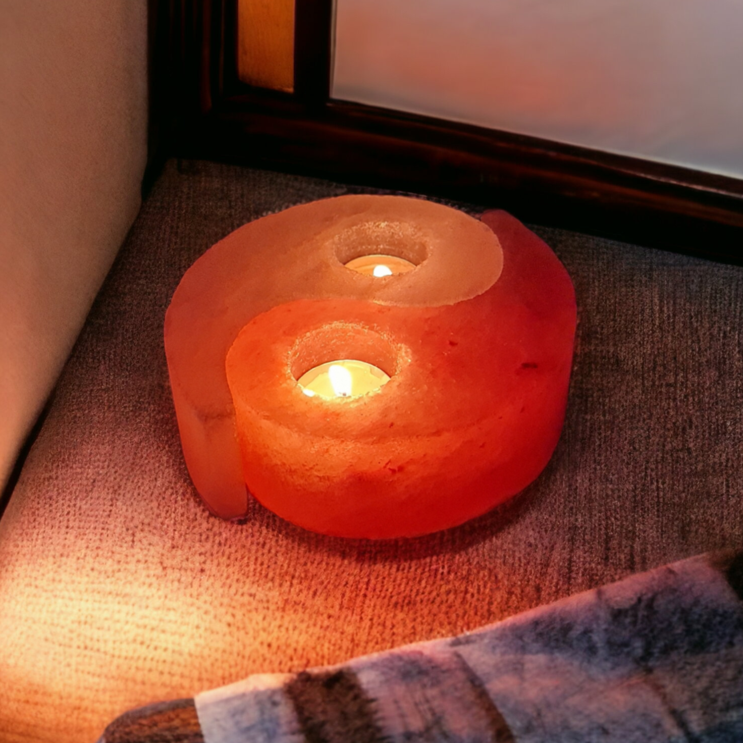Bougeoir de sel rose de l'Himalaya : Yin Yang