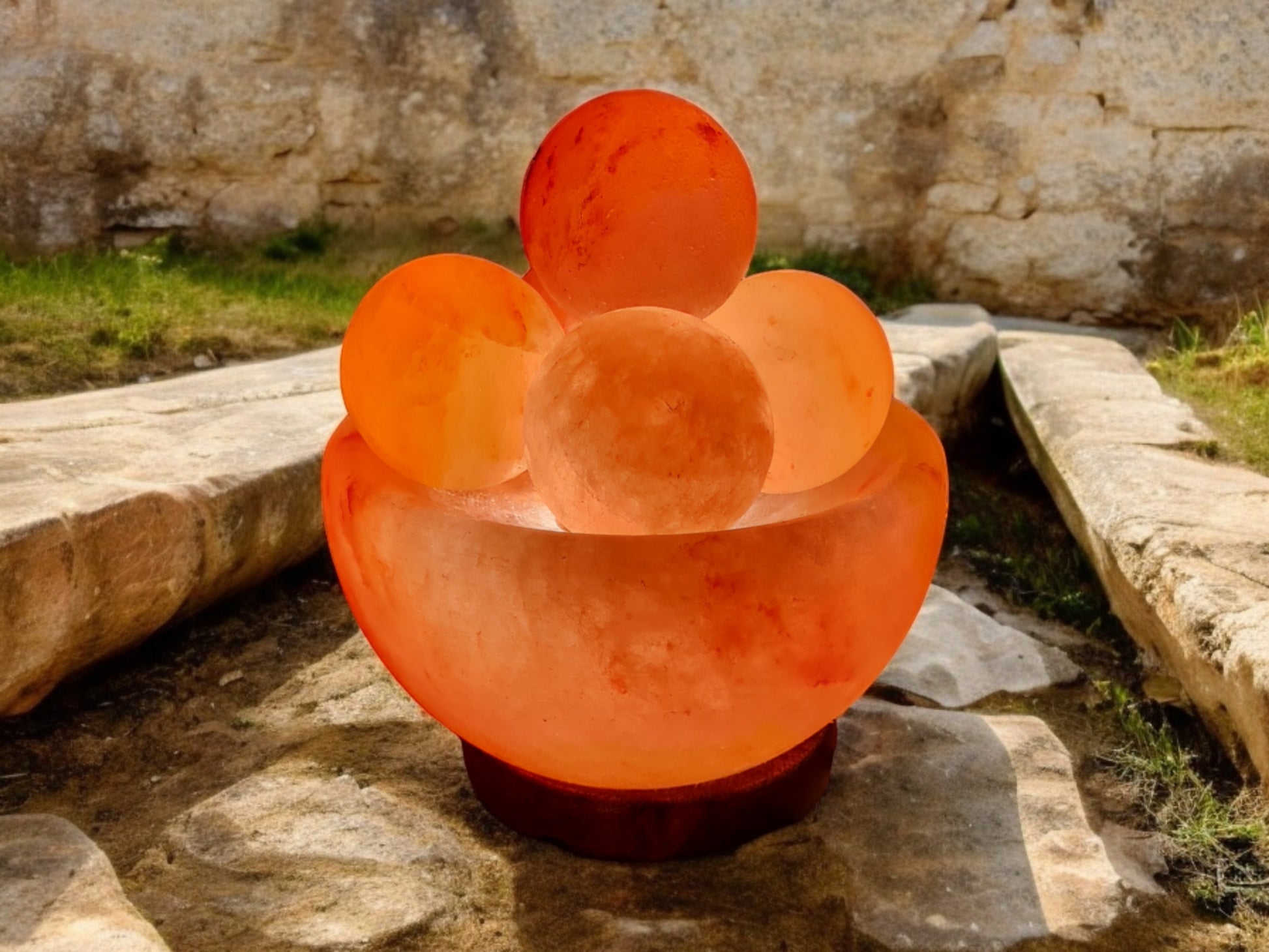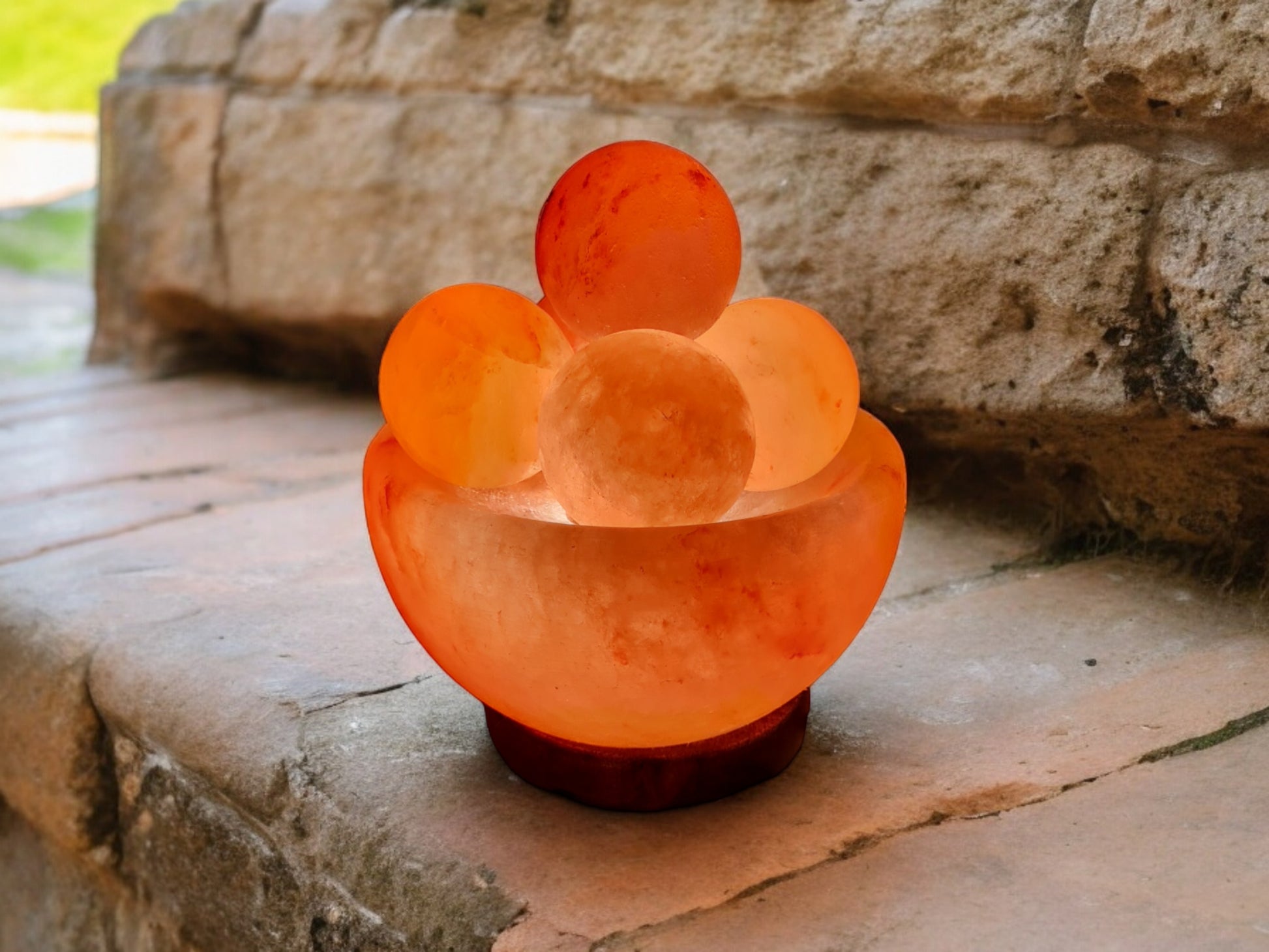 Découvrez notre Lampe en Sel de l'Himalaya "Bol de massage", un chef-d'œuvre au design unique, sculptée à la main.