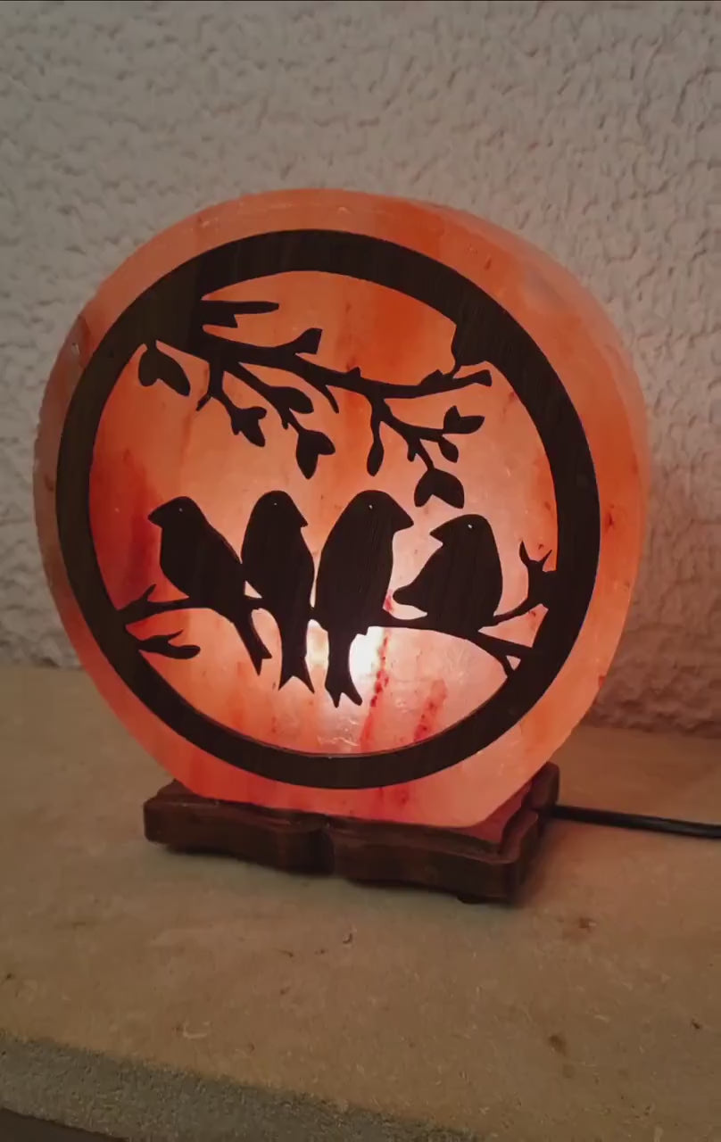 Plongez dans la délicatesse avec notre Lampe en Sel de l'Himalaya 3D "Oiseaux".