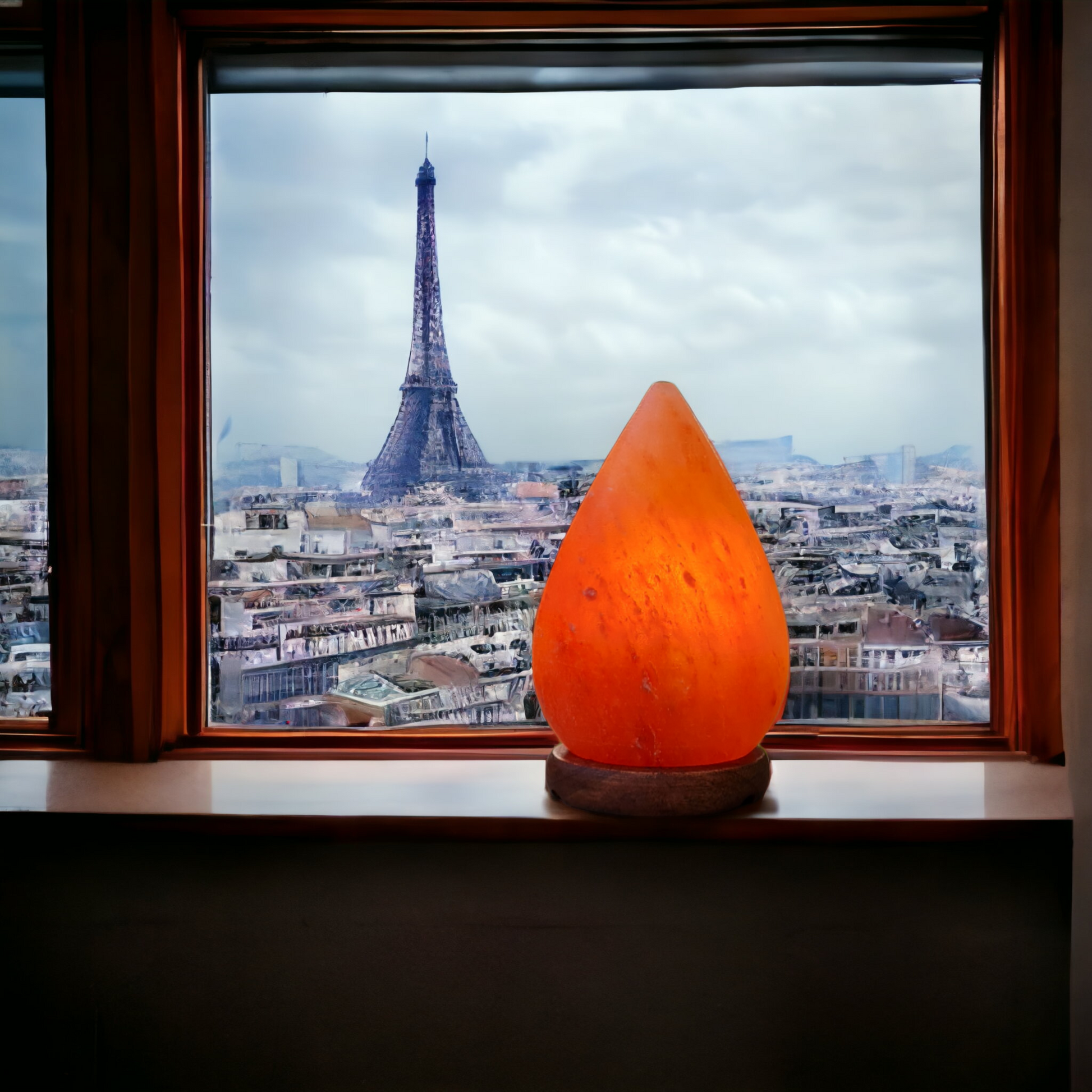 Découvrez notre Lampe en Sel de l'Himalaya "Goutte d'eau", un chef-d'œuvre au design unique, sculpté à la main.